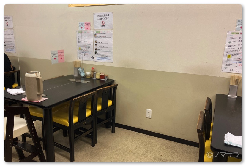 座席は4人掛けテーブル3つとカウンター8席の合計20席。テーブルがあるのでファミリーでも大丈夫。