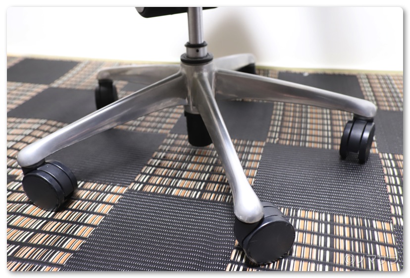 直径75mmの大型キャスターを採用。座ったまま動く時などの抵抗が小さく、腰への負担を軽減します。