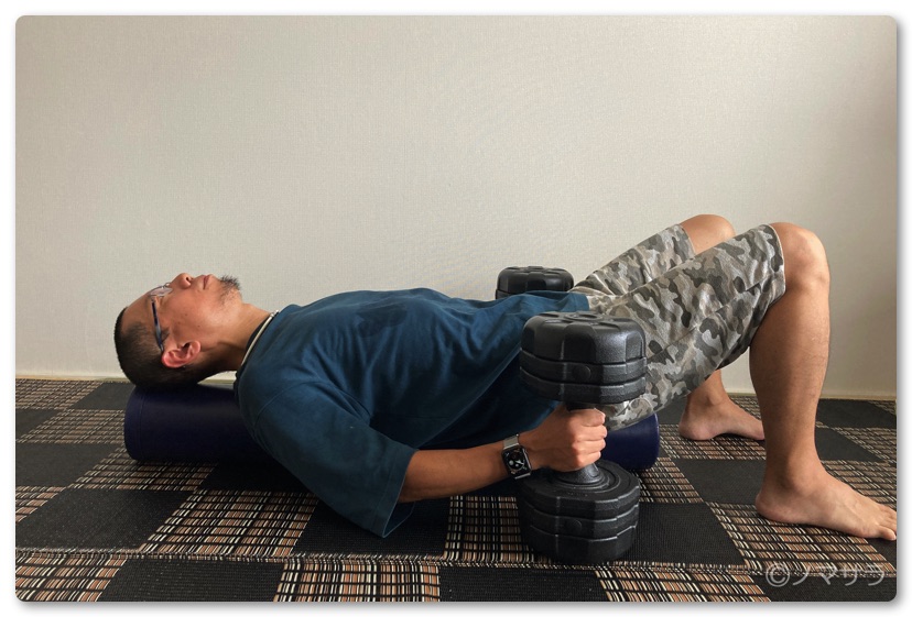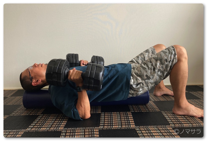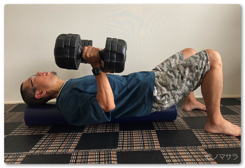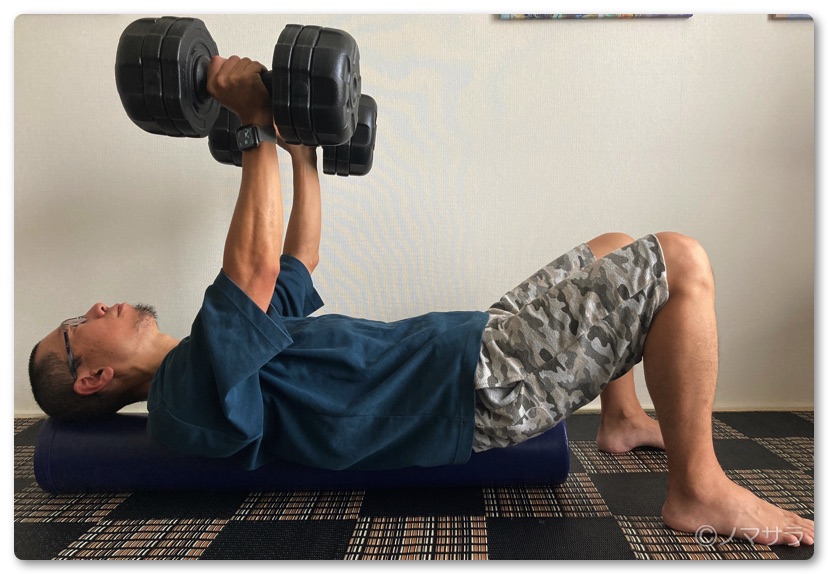 ストレッチポールとダンベルがあれば自宅で手軽にベンチプレスができます!