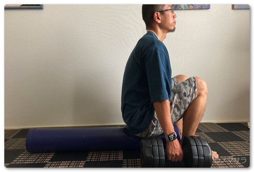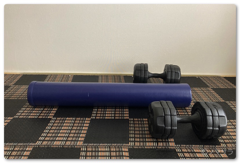 ワタクシは10kgのダンベルで筋トレしていますが、自分の筋力に合わせて、無理のない範囲で行ってください。