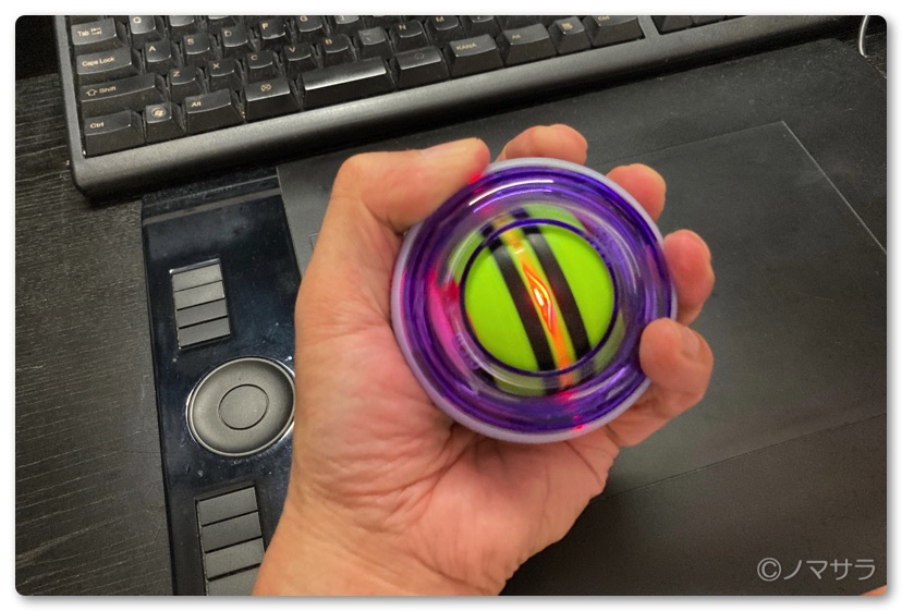 パワーボールは中のボールの回転数が上がるとともに負荷が 高くなるので、ご自身にあった負荷でトレーニングできるので、 ダンベルなどと違い、買い足していく必要はありません。 野球ボール程度の大きさなので、部屋に置いておいても 邪魔にならず、楽に持ち運びできます。