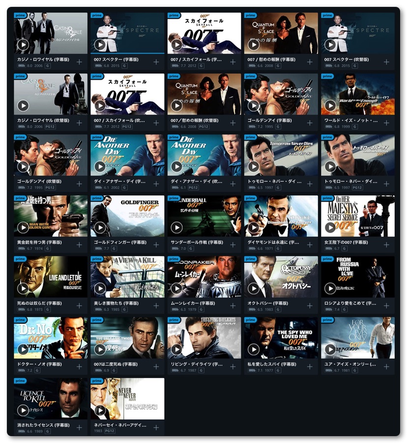 英国諜報部MI6のスパイ「ジェームズ・ボンド」が活躍する大人気アクション映画「007(ダブルオーセブン)」の全24作品+番外編1本が9月10日よりAmazonPrimeVideoで見放題になりました。おそらく最新作となる25作目の「007/ノー・タイム・トゥ・ダイ」が10月1日(金)に日本で公開されるのに合わせての無料公開だと思われます。