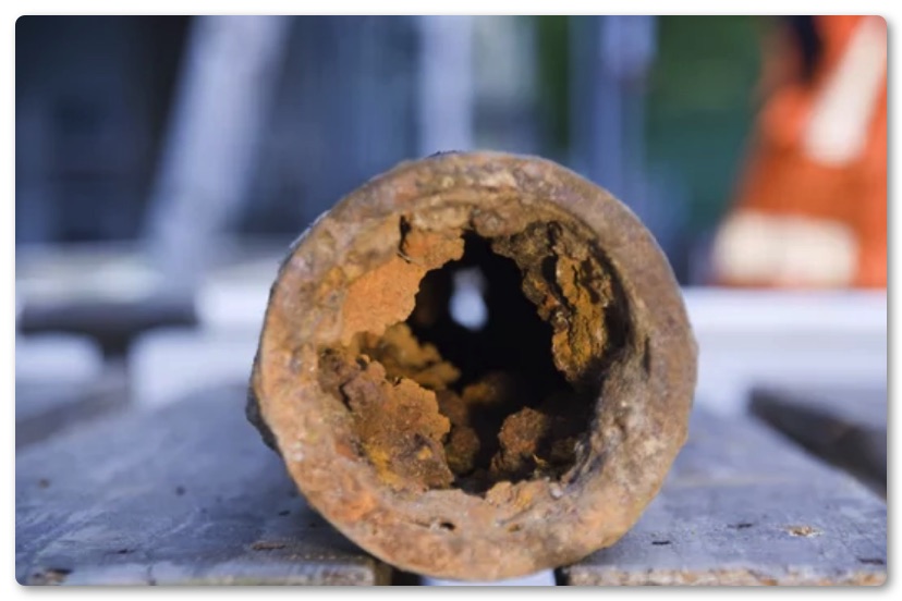 古い水道管はサビやアカなどが付着してこういう状態になっていることがあります。